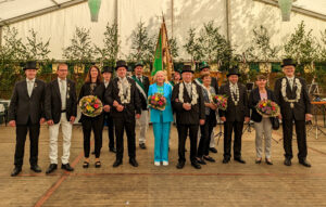 Als alter König verabschiedete sich unser Ehrenpräsident Karl-Heinz Ueding mit seiner Königin Gertrud Meinert von seinen Kameraden. Silberkönig war in diesem Jahr der „Sonnenkönig“ vom Jubiläum 1998, Michael Lüers mit seiner Königin Beate Lüers. Anton Schöne und Anni Sommer bildeten in diesem Jahr unser Rubinkönigspaar und auch unser Goldkönigspaar, also das Königshaus vom Jubiläum 1973, war mit Rudi Hölker und Agnes Lüers zugegen. Unser Kaiser Bernhard Ewering sen. war leider in 2019 verstorben und konnte somit nicht am Jubiläum teilnehmen. Dafür konnten wir aber zum Jubiläum unsere Kaiserin Anneliese Hölper unter uns begrüßen.